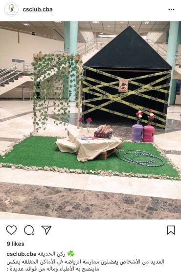 1. ركن الحديقة الذي تحدث عن فوائد ممارسة الرياضة في الاماكن المفتوحة.